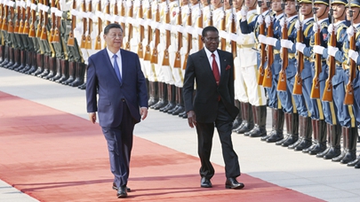 5月28日下午,国家主席习近平在北京人民大会堂同来华进行国事访问的赤道几内亚总统奥比昂举行会谈。会谈前,习近平和夫人彭丽媛在人民大会堂东门外广场为奥比昂和夫人康斯坦西娅举行欢迎仪式。