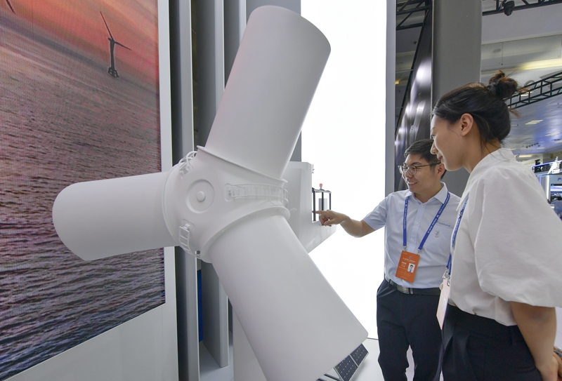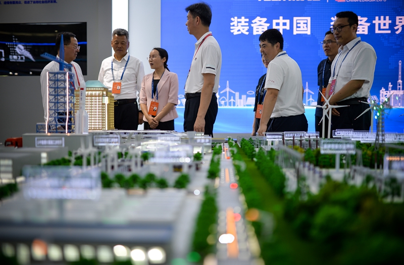 6月26日,在第八届中国—亚欧博览会上,参观者在金风科技股份有限公司展区了解展品。