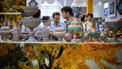 6月26日,在位于乌鲁木齐的新疆国际会展中心,观众在伊朗展台选购商品。