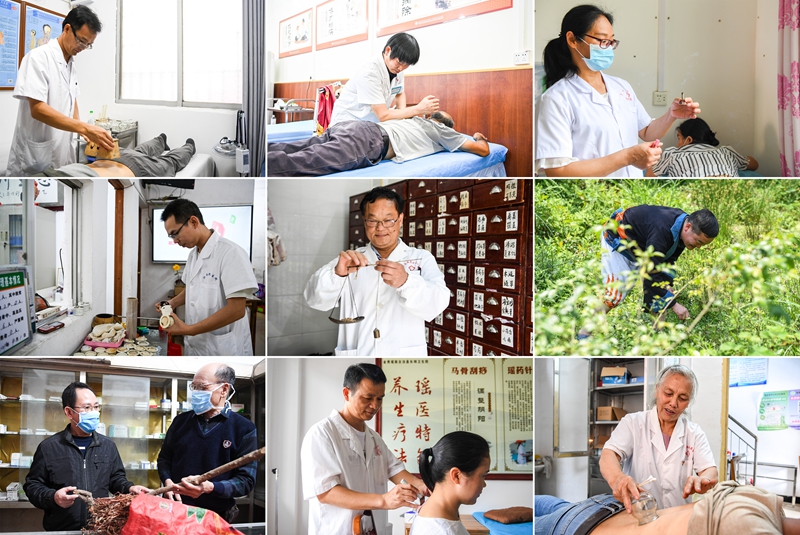这张拼版照片显示的是乡村医生们使用中医药为患者治疗。第一排从左至右:广西钟山县石龙镇松桂村乡村医生潘绍瑜(2024年8月14日摄);广西河池市宜州区德胜镇上坪村乡村医生葛现克(2024年8月15日摄);广西武宣县东乡镇河马村乡村医生江凤英(2020年6月20日摄)。第二排从左至右:广西东兴市江平镇氵万(左“氵”右“万”,音同“万”)尾村京族乡村医生陆超波(2024年7月19日摄);广西天等县龙茗镇益山村乡村医生黄日雷(2020年4月22日摄);广西南丹县八圩瑶族乡瑶寨村乡村医生黎谋(2020年4月29日摄)。第三排从左至右:广西东兴市江平镇氵万(左“氵”右“万”,音同“万”)尾村京族乡村医生谭国仕(左)(2020年3月31日摄);广西金秀瑶族自治县长垌乡长垌村和桂田村的乡村医生陶雷(左)(2020年7月8日摄);广西钟山县两安瑶族乡竹梅村乡村医生王秋姣(2021年5月11日摄)。