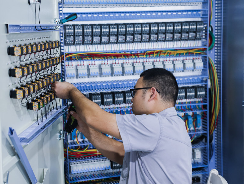 10月23日,在位于金华市金义新区的浙江大维高新技术股份有限公司生产线上,工人组装控制柜。浙江大维高新技术股份有限公司是一家研发绿色低碳化、数智化技术产品的高新技术企业。