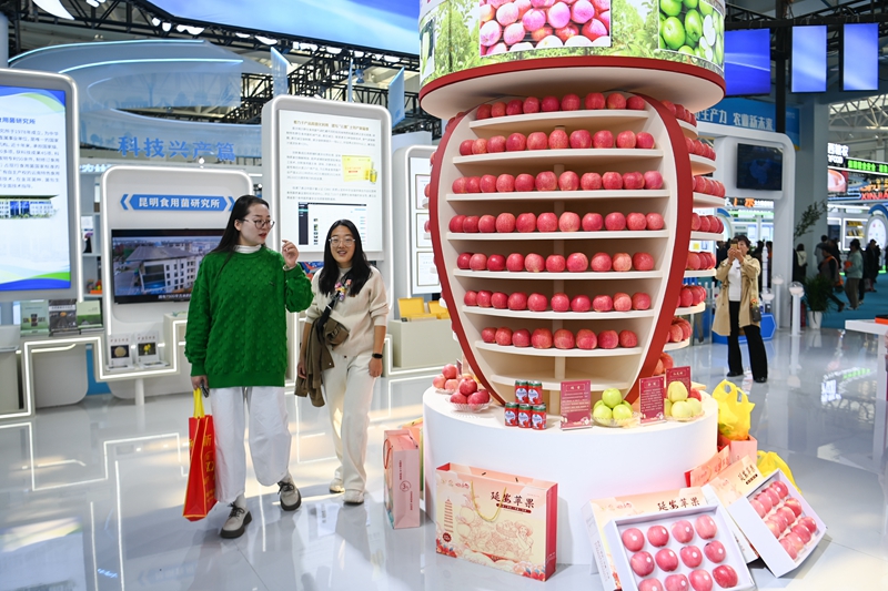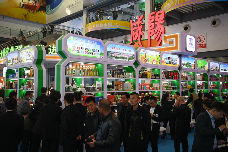 10月25日,观众在杨凌农高会了解塔吉克斯坦农产品。