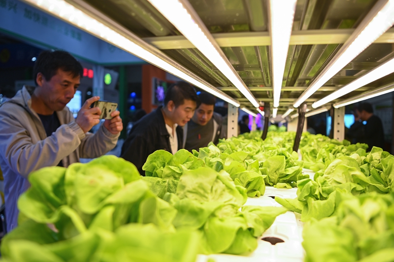 10月25日,观众在杨凌农高会了解智慧植物工厂。
