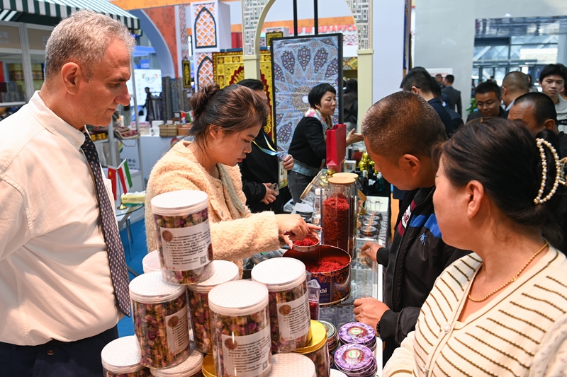 10月25日,观众在杨凌农高会了解伊朗藏红花。