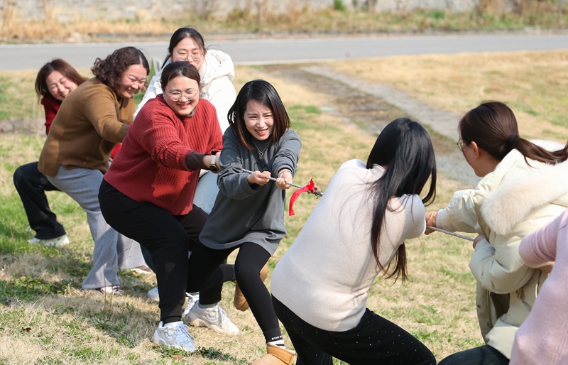 3月6日,在江苏省句容市崇明街道甲城社区迎“三八”活动中,妇女们在进行拔河比赛。