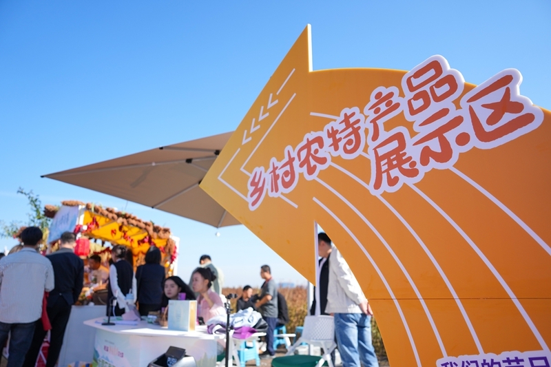 9月23日,黑龙江省佳木斯市桦南县举办庆祝中国农民丰收节活动,参观者在乡村农特产品展示区参观。