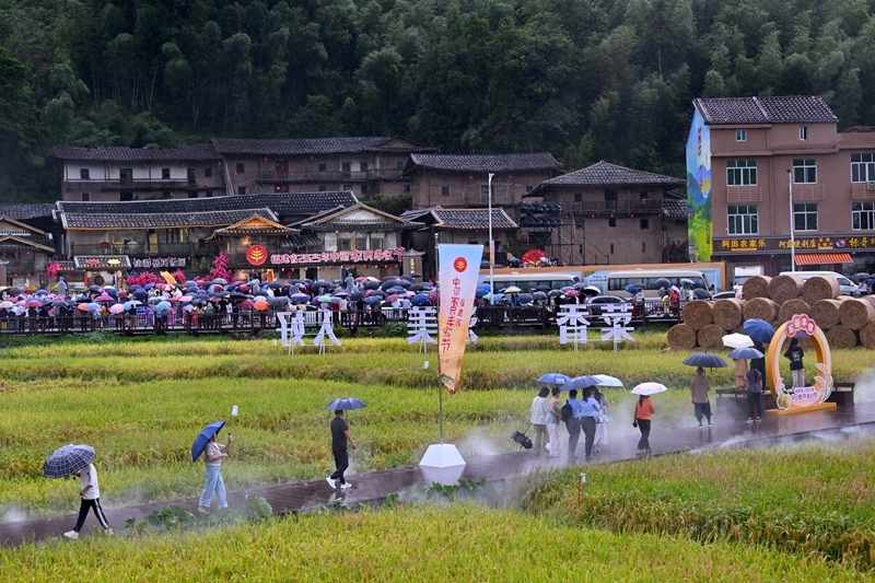 9月23日,游客在福建省2025年中国农民丰收节主会场活动举办地莆田市仙游县菜溪乡象星村参观。