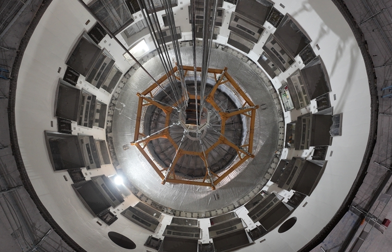 这是10月1日在紧凑型聚变能实验装置(BEST)建设现场拍摄的成功落位安装的杜瓦底座。