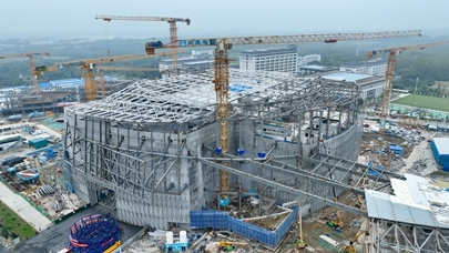 这是10月1日拍摄的紧凑型聚变能实验装置(BEST)建设现场(无人机照片)。