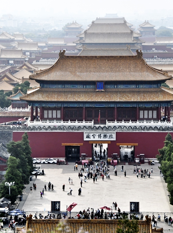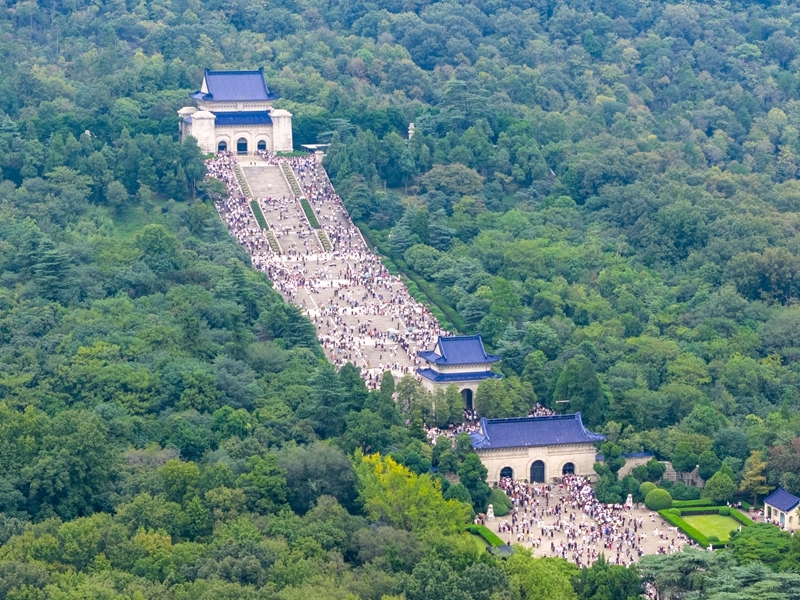 10月4日,游客在南京中山陵景区参观游览(无人机照片)。