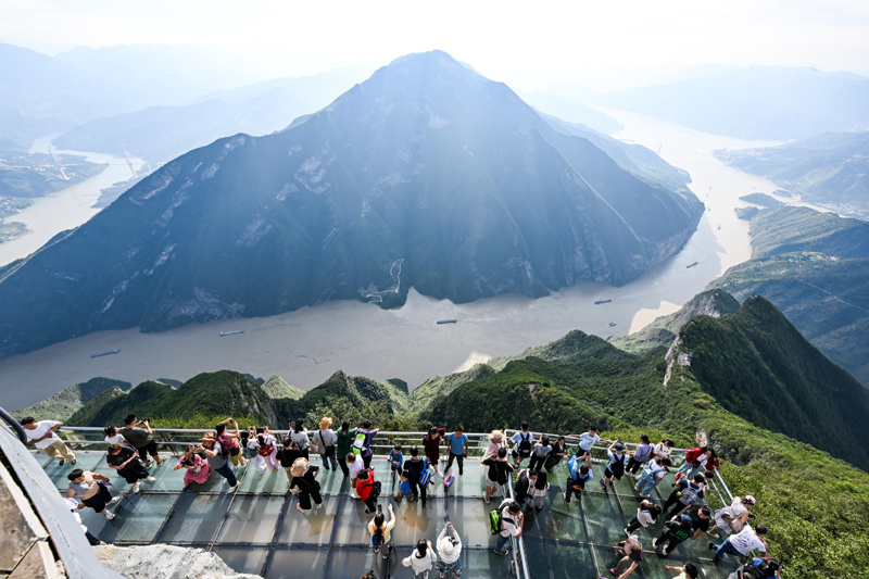 10月5日,游客在重庆奉节三峡之巅景区游览。