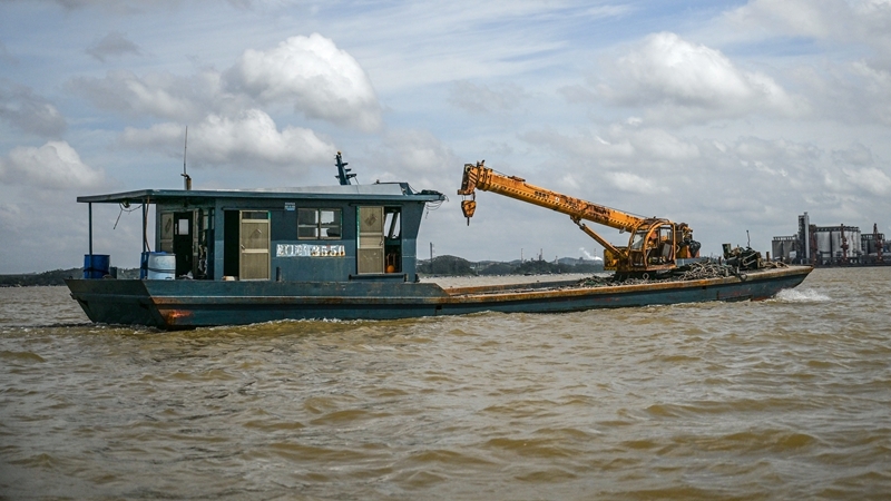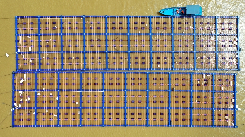 10月7日,一艘修补船开往茅尾海修补受损蚝排。