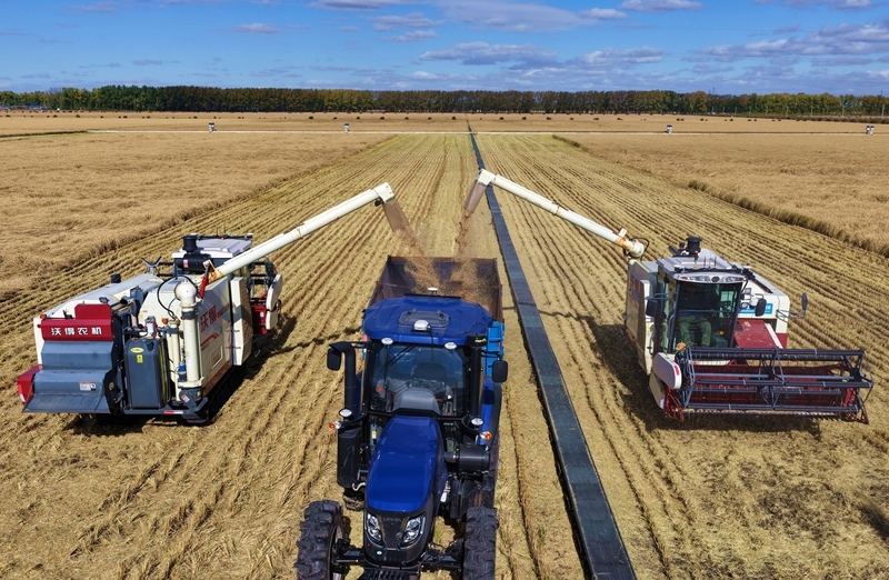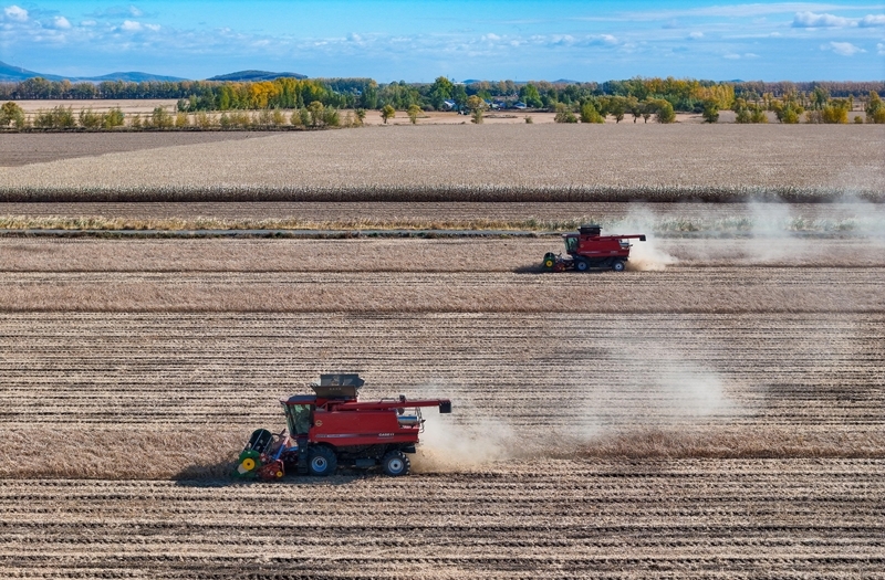 寒露时节,黑龙江省各地抢抓农时忙农事,田间地头一片繁忙景象。