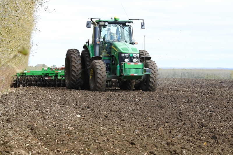 10月8日,在北大荒集团北安分公司赵光农场有限公司第六管理区,一台大型联合整地机在刚完成收获的大豆地块进行整地作业。
