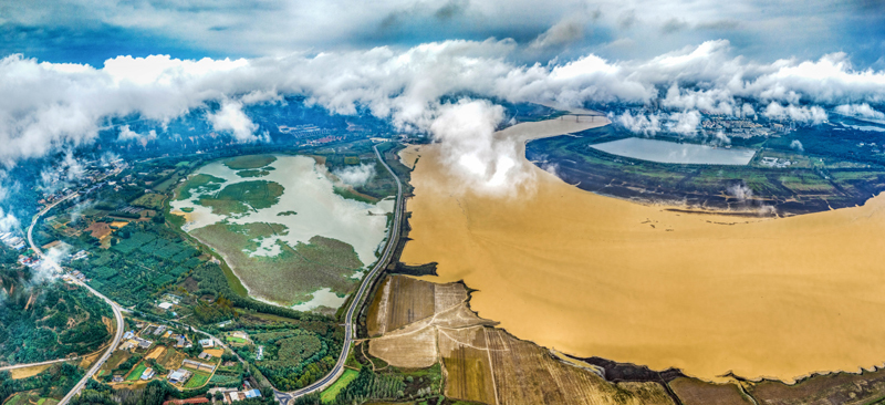 10月17日在山西省运城市平陆县境内拍摄的黄河云海景观。