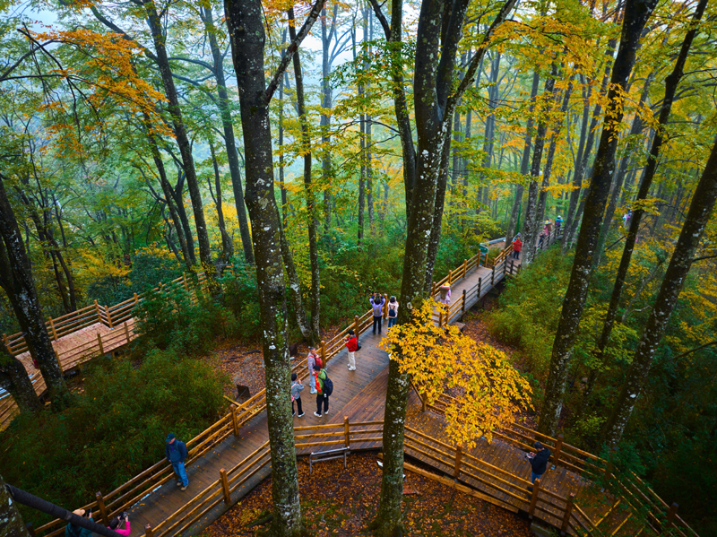 10月18日,游客在四川省光雾山风景区的天然画廊畅游。