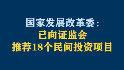 国家发展改革委:已向证监会推荐18个民间投资项目