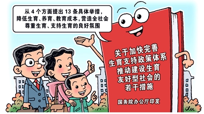 国务院办公厅印发的《关于加快完善生育支持政策体系推动建设生育友好型社会的若干措施》10月28日对外发布,从4个方面提出13条具体举措,降低生育、养育、教育成本,营造全社会尊重生育、支持生育的良好氛围。