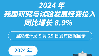 图表:2024年我国研究与试验发展经费投入同比增长8.9%