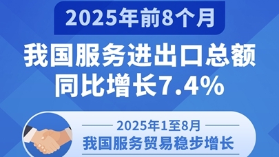 图表:前8个月我国服务进出口总额同比增长7.4%