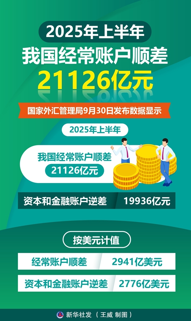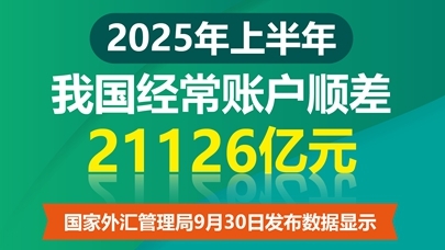 国家外汇管理局9月30日发布数据显示,2025年上半年,我国经常账户顺差21126亿元,资本和金融账户逆差19936亿元。