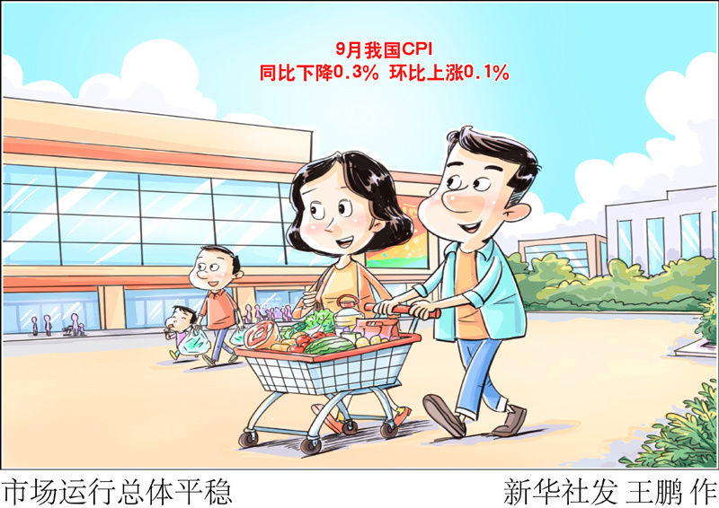 国家统计局10月15日发布数据显示,9月份,消费市场运行总体平稳,全国居民消费价格指数(CPI)同比下降0.3%,环比上涨0.1%,扣除食品和能源价格的核心CPI同比上涨1.0%,涨幅连续第5个月扩大。
