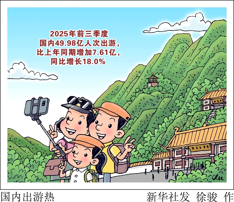 文化和旅游部10月21日发布2025年前三季度国内旅游市场数据情况。根据国内居民出游抽样调查统计结果,前三季度,国内居民出游人次49.98亿,比上年同期增加7.61亿,同比增长18.0%。