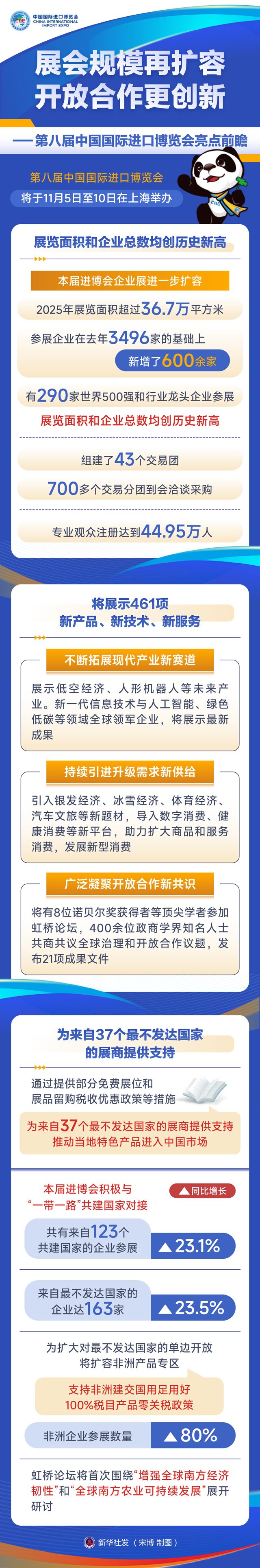 图表:展会规模再扩容 开放合作更创新——第八届中国国际进口博览会亮点前瞻