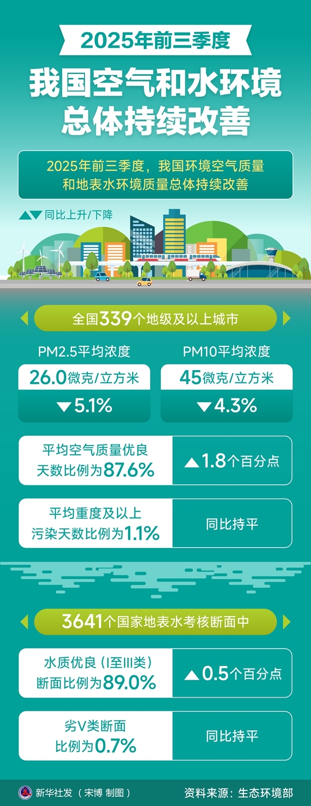 图表:2025年前三季度我国空气和水环境总体持续改善