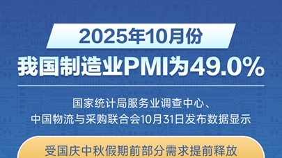 国家统计局服务业调查中心、中国物流与采购联合会10月31日发布数据显示,受国庆中秋假期前部分需求提前释放及国际环境更趋复杂等因素影响,10月份,制造业采购经理指数(PMI)为49.0%,比上月下降0.8个百分点。