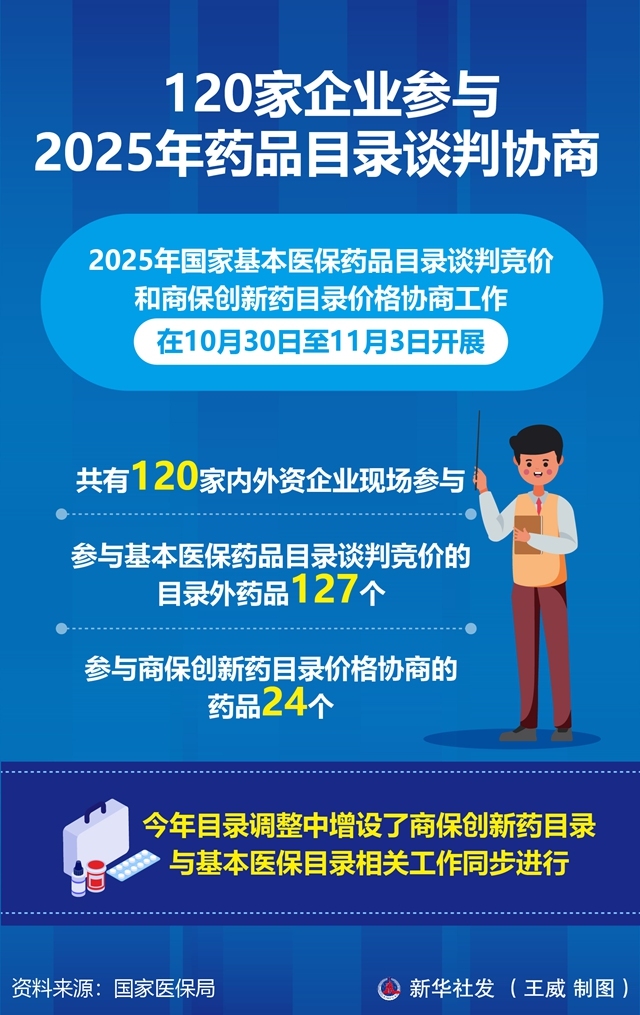 据国家医保局最新消息,2025年国家基本医保药品目录谈判竞价和商保创新药目录价格协商工作在10月30日至11月3日开展,共有120家内外资企业现场参与,参与基本医保药品目录谈判竞价的目录外药品127个,参与商保创新药目录价格协商的药品24个。