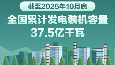 图表:截至2025年10月底全国累计发电装机容量37.5亿千瓦