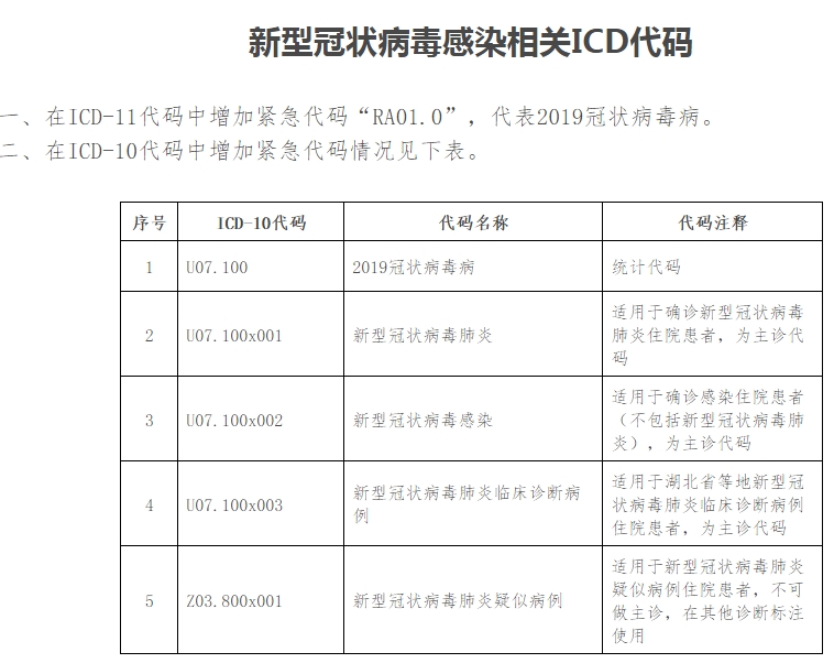 关于印发新型冠状病毒感染相关ICD代码的通知