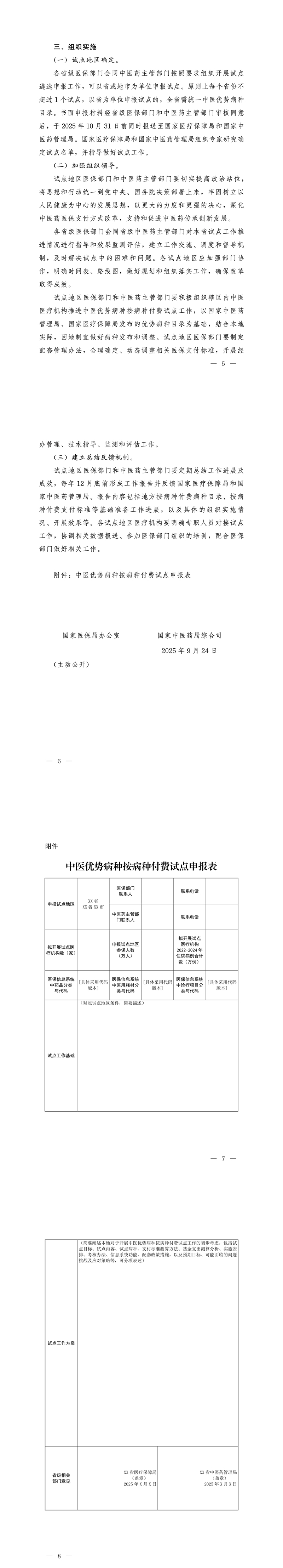 • 标       题: 国家医保局办公室 国家中医药局综合司关于开展中医优势病种按病种付费试点工作的通知